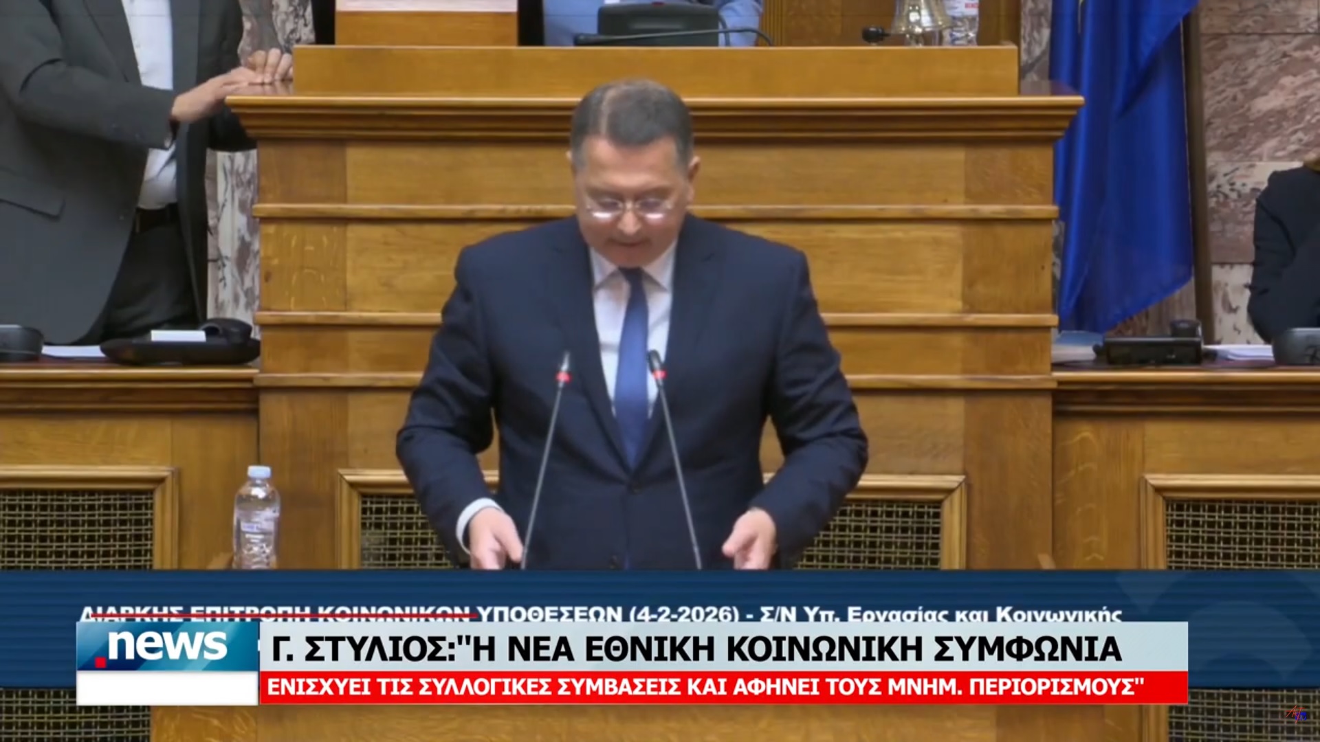 ΑΡΤΑ | 10 Φεβρουαρίου, 2026 Γ.ΣΤΥΛΙΟΣ:” Η ΝΕΑ ΕΘΝΙΚΗ ΚΟΙΝΩΝΙΚΗ ΣΥΜΦΩΝΙΑ ΕΝΙΣΧΥΕΙ ΤΙΣ ΣΥΛΛΟΓΙΚΕΣ ΣΥΜΒΑΣΕΙΣ”