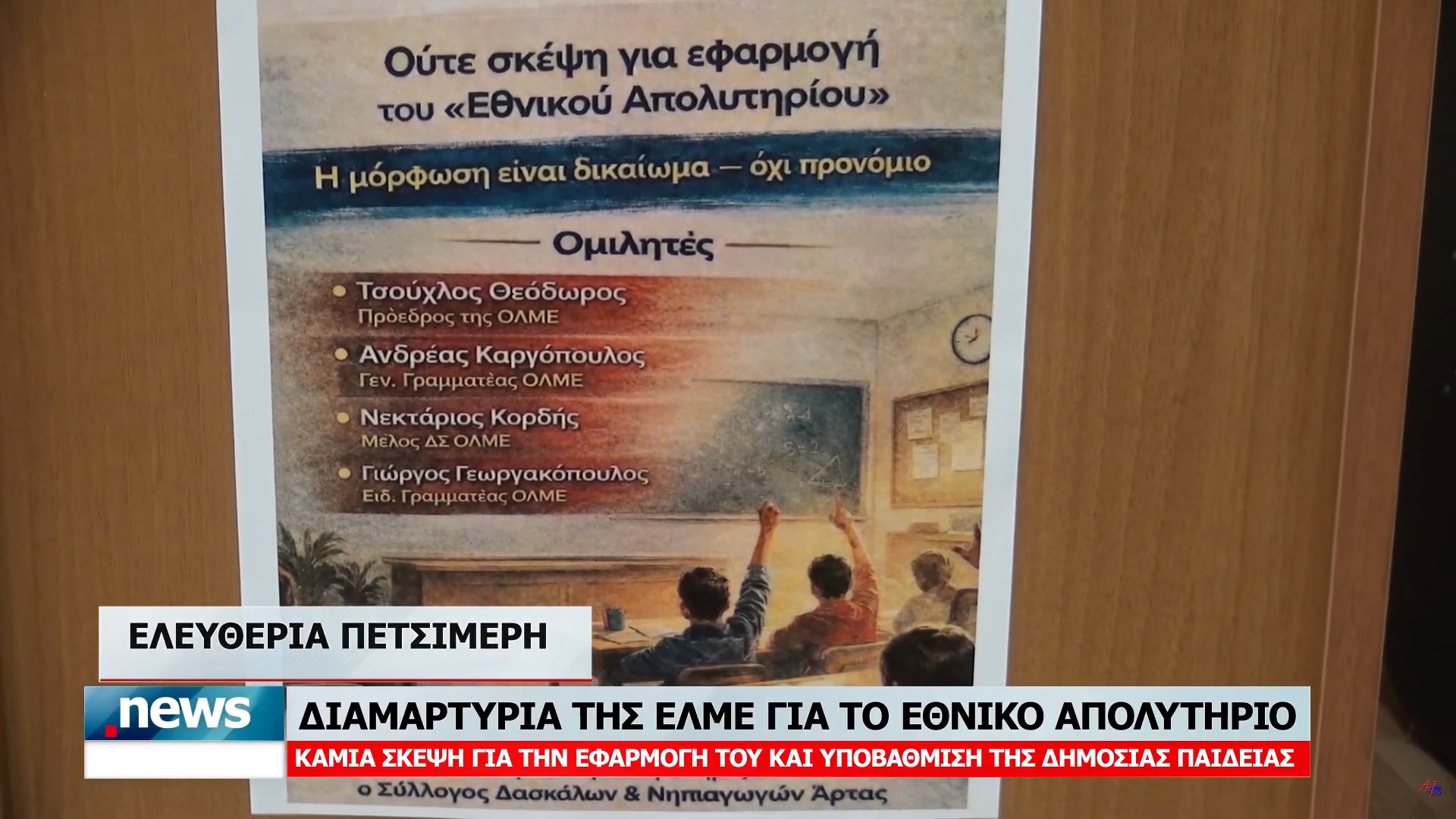 ΑΡΤΑ | 2 Απριλίου, 2026 ΔΙΑΜΑΡΤΥΡΙΑ ΤΗΣ ΕΛΜΕ ΓΙΑ ΤΟ ΕΘΝΙΚΟ ΑΠΟΛΥΤΗΡΙΟ – ΚΑΜΙΑ ΣΚΕΨΗ ΓΙΑ ΤΗΝ ΕΦΑΡΜΟΓΗ ΤΟΥ